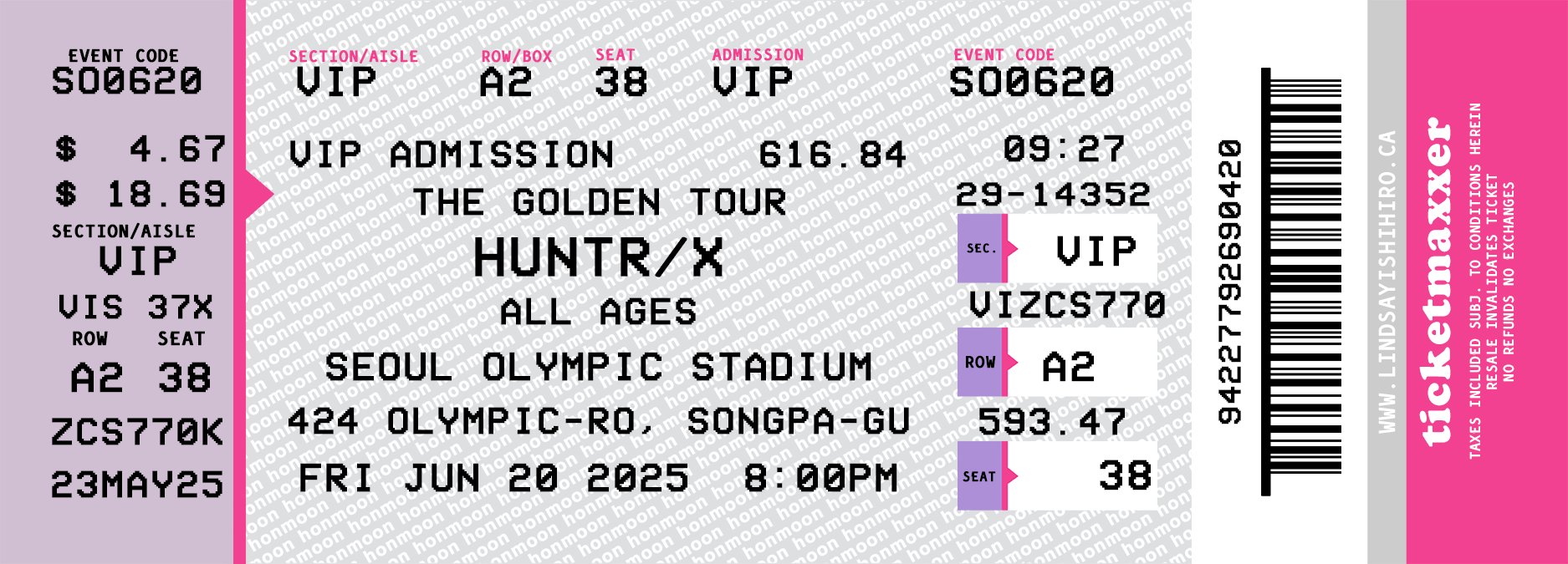 Printed on luxe soft-touch laminate card, these 2x6" bookmarks look exactly like tickets to a HUNTR/X concert.